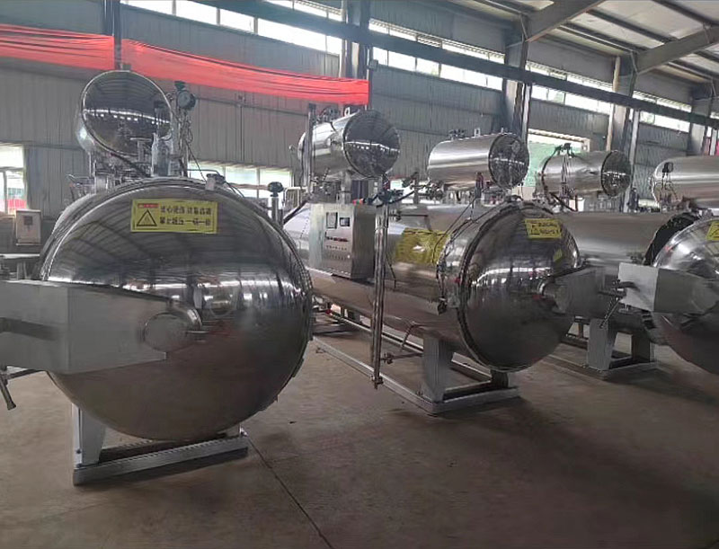 3、電腦程控全自動 ,恒溫、恒壓,回轉式,噴淋風扇內循環等系列臥式殺菌鍋。